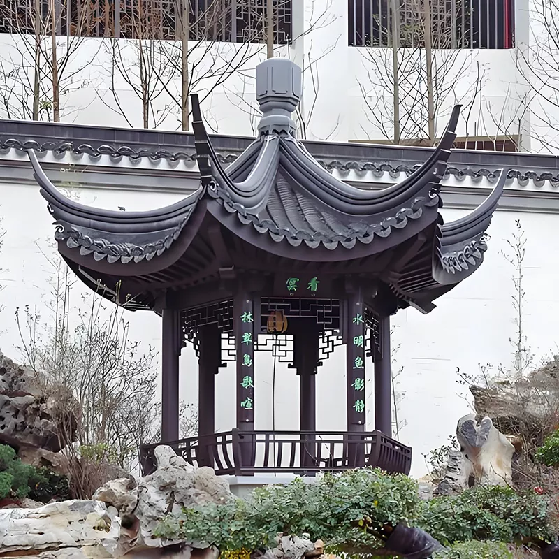 Shandong Duoping New Material Technology Co., Ltd - бұл Хуйчжоу стиліндегі павильондардың кәсіби ҒЗТКЖ, өндірісі және жеткізушісі. Дәстүрлі Хуйчжоу ежелгі сәулет өнеріне, шұңқырлы құрылымдарды дайындауға және қолдан жасалған кірпіш пен ағаш оюларының негізгі технологияларына сүйене отырып, біз Хуйчжоу сәулет өнерінің «қара плиткалар, ақ қабырғалар, төңкерілген карниздер және көтерілген бұрыштары» бар классикалық түрін қайталаймыз. Біз ежелгі сәулеттік сүйкімділікті, тұрақтылықты, беріктік пен мәдени құрылымды біріктіретін Хуйчжоу стиліндегі павильон өнімдерін жасаймыз. Хуйчжоу стиліндегі бақтар мен қытайлық стильдегі көріністер үшін негізгі ландшафт сәулеті ретінде біздің павильондар Хуйчжоу стиліндегі аулаларда, көне көрікті жерлерде, қытай стиліндегі үйлерде, муниципалды бақтарда және басқа сценарийлерде кеңінен қолданылады. «Дәстүрлі шеберлік + заманауи коррозияға қарсы» шешімімен біз Хуйчжоу мәдениетін мұраға аламыз. Біз сізбен Хуйчжоу стиліндегі әртүрлі ландшафт жобалары үшін теңшелген шешімдерді ұсыну үшін жұмыс істеуді шын жүректен күтеміз.