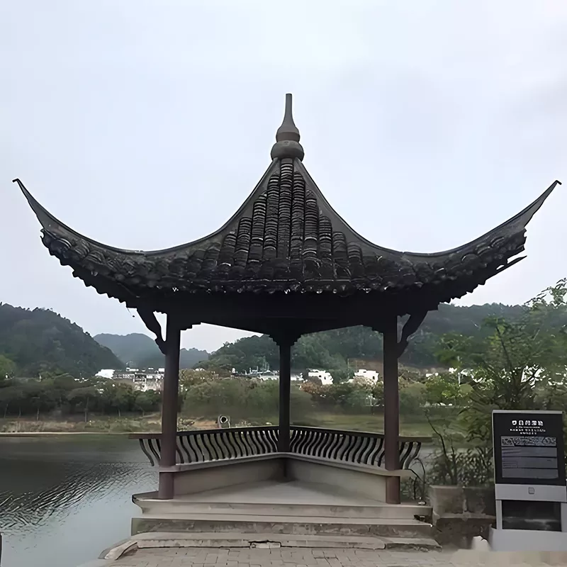Төрт бұрышты шпиль павильондары, алты бұрышты павильондар және сегіз бұрыштық павильондар сияқты классикалық Хуйчжоу пішіндерін қамтитын стандартты емес өлшемді теңшеуді (3000-6000 мм) қолдайды. Ағаш опцияларына борнеол, шырша, консервант қарағай және т.б. кіреді және плитка түрлерін кішкентай жасыл плиткалармен және цилиндрлік плиткалармен теңшеуге болады. Орнату бағандарды бекіту үшін бетон негізін, монтаждау тенондарды қатты зақымдамау үшін жердегі тігісті бекітеді. Төбесі тегіс дренажды қамтамасыз ету үшін Хуйчжоу шеберлігіне сәйкес кәсіби плиткашылармен төселеді және Хуйчжоу ежелгі сәулетінің тұрақтылығы мен сүйкімділігін сақтайды.