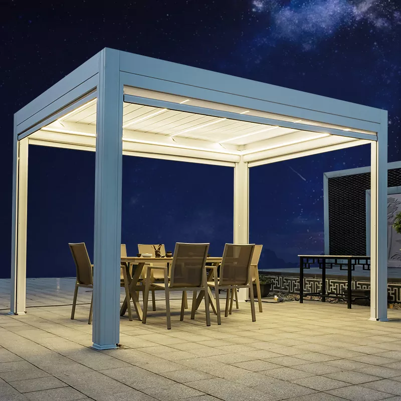 A: Сценарийдің әртүрлі қажеттіліктерін қанағаттандыру үшін әртүрлі төбелік материалдар қол жетімді: шыңдалған шыны күшті мөлдірлікке және жоғары қаттылыққа ие, вилла аулалары сияқты жеке демалыс сценарийлеріне жарамды; ДК шыдамдылық тақтасы күшті соққыға төзімді және жеңіл салмаққа ие, коммерциялық тіркеу және муниципалды пайдалану сияқты жоғары жиілікті пайдалану сценарийлері үшін жарамды; су өткізбейтін кенептің жұмсақ құрылымы бар және сақтау оңай, уақытша пайдалануға немесе мобильді қажеттіліктерге жарамды. Клиенттер өз қажеттіліктеріне қарай таңдай алады.