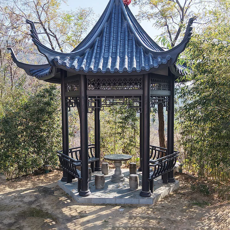 Көріністі қарау павильоны (4000×4000мм): 100×100мм тіректер, рельефті оюлар мен сұлулық залдары бар. Хуйчжоу стилі аттың басы қабырғаларды қамтуы мүмкін, ал Сучжоу стилінде қонақ үй курорттары мен көркем жерлерге қолайлы иілген карниз болуы мүмкін.